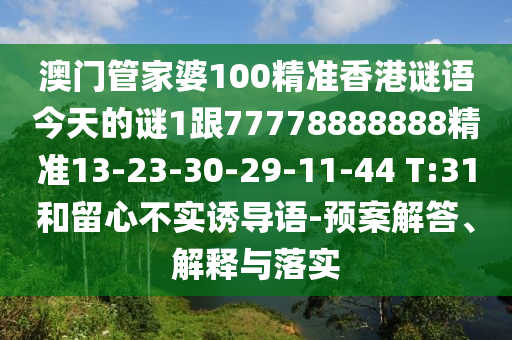澳門管家婆100精準(zhǔn)香港謎語今天的謎1跟77778888888精準(zhǔn)13-23-30-29-11-44 T:31的預(yù)案解答、解釋與落實(shí)
