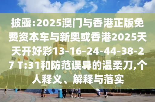 披露:2025澳門與香港正版免費資本車與新奧或香港2025天天開好彩13-16-24-44-38-27 T:31和防范誤導的溫柔刀,個人釋義、解釋與落實