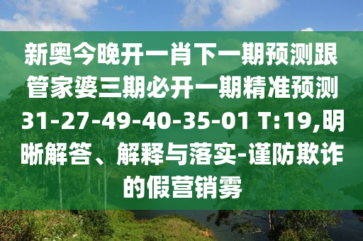 新奧今晚開一肖下一期預(yù)測跟管家婆三期必開一期精準(zhǔn)預(yù)測31-27-49-40-35-01 T:19,明晰解答、解釋與落實-謹(jǐn)防欺詐的假營銷霧