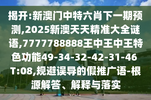 揭開:新澳門中特六肖下一期預測,2025新澳天天精準大全謎語,7777788888王中王中王特色功能49-34-32-42-31-46 T:08,規(guī)避誤導的假推廣語-根源解答、解釋與落實