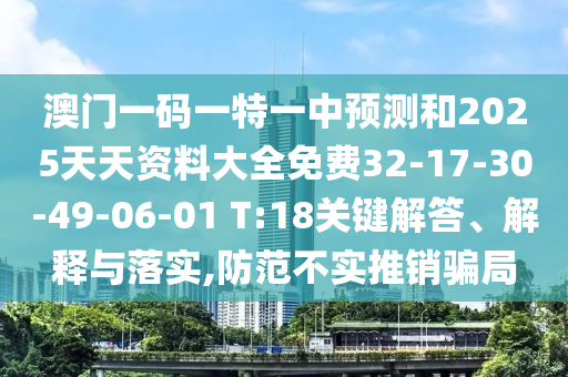 澳門一碼一特一中預(yù)測(cè)和2025天天資料大全免費(fèi)32-17-30-49-06-01 T:18的關(guān)鍵解答、解釋與落實(shí)