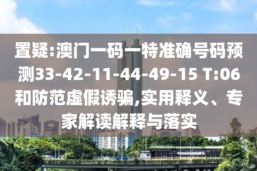 置疑:澳門一碼一特準(zhǔn)確號(hào)碼預(yù)測(cè)33-42-11-44-49-15 T:06和防范虛假誘騙,實(shí)用釋義、專家解讀解釋與落實(shí)