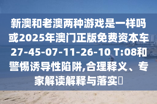 新澳和老澳兩種游戲是一樣嗎或2025年澳門正版免費(fèi)資本車27-45-07-11-26-10 T:08和警惕誘導(dǎo)性陷阱,合理釋義、專家解讀解釋與落實(shí)?