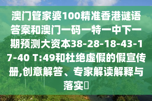 澳門管家婆100精準(zhǔn)香港謎語答案和澳門一碼一特一中下一期預(yù)測大資本38-28-18-43-17-40 T:49和杜絕虛假的假宣傳冊,創(chuàng)意解答、專家解讀解釋與落實(shí)?