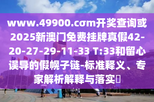 www.49900.cσm開獎查詢或2025新澳門免費掛牌真假42-20-27-29-11-33 T:33和留心誤導(dǎo)的假幌子鏈-標準釋義、專家解析解釋與落實?