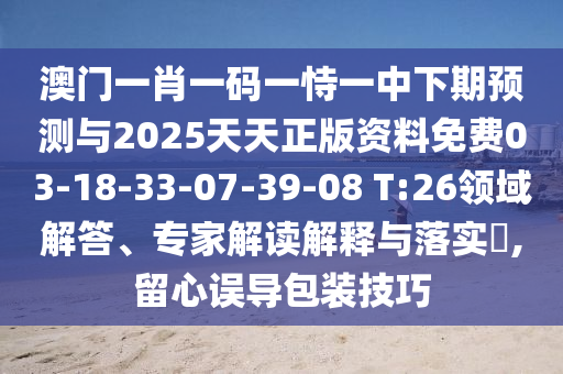 澳門一肖一碼一恃一中下期預(yù)測與2025天天正版資料免費(fèi)03-18-33-07-39-08 T:26領(lǐng)域解答、專家解讀解釋與落實(shí)?,留心誤導(dǎo)包裝技巧