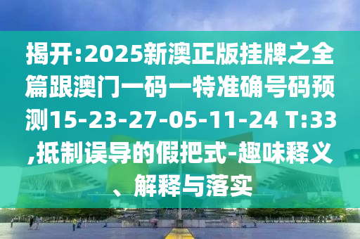 揭開:2025新澳正版掛牌之全篇跟澳門一碼一特準(zhǔn)確號碼預(yù)測15-23-27-05-11-24 T:33,抵制誤導(dǎo)的假把式-趣味釋義、解釋與落實
