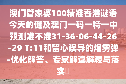 澳門管家婆100精準(zhǔn)香港謎語今天的謎及澳門一碼一特一中預(yù)測準(zhǔn)不準(zhǔn)31-36-06-44-26-29 T:11和留心誤導(dǎo)的煙霧彈-優(yōu)化解答、專家解讀解釋與落實(shí)?