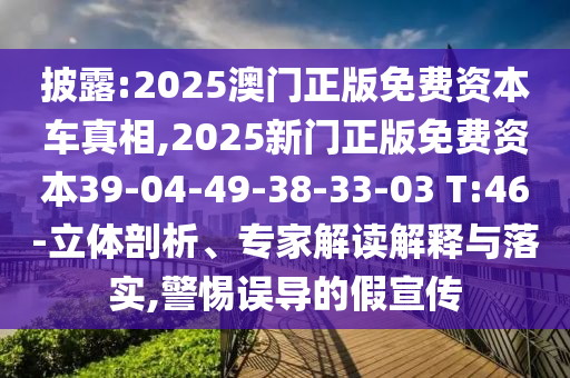 披露:2025澳門正版免費(fèi)資本車真相,2025新門正版免費(fèi)資本39-04-49-38-33-03 T:46-立體剖析、專家解讀解釋與落實(shí),警惕誤導(dǎo)的假宣傳