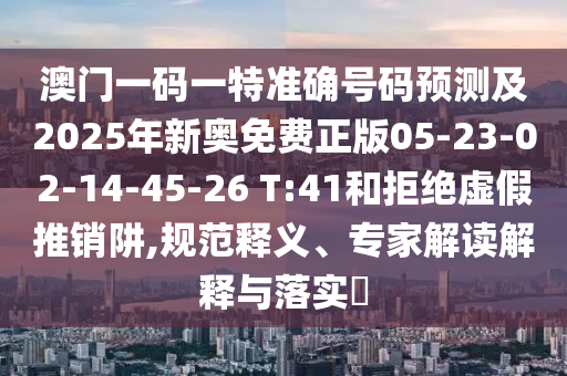 澳門一碼一特準(zhǔn)確號碼預(yù)測及2025年新奧免費正版05-23-02-14-45-26 T:41和拒絕虛假推銷阱,規(guī)范釋義、專家解讀解釋與落實?