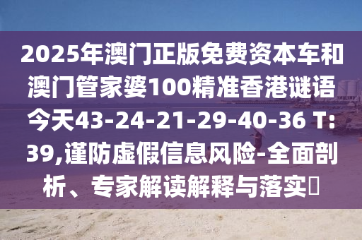 2025年澳門正版免費資本車和澳門管家婆100精準(zhǔn)香港謎語今天43-24-21-29-40-36 T:39,謹防虛假信息風(fēng)險-全面剖析、專家解讀解釋與落實?