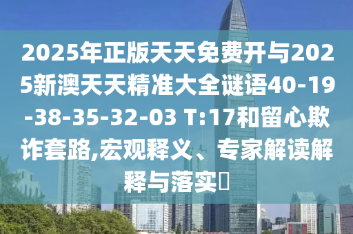 2025年正版天天免費開與2025新澳天天精準大全謎語40-19-38-35-32-03 T:17和留心欺詐套路,宏觀釋義、專家解讀解釋與落實?